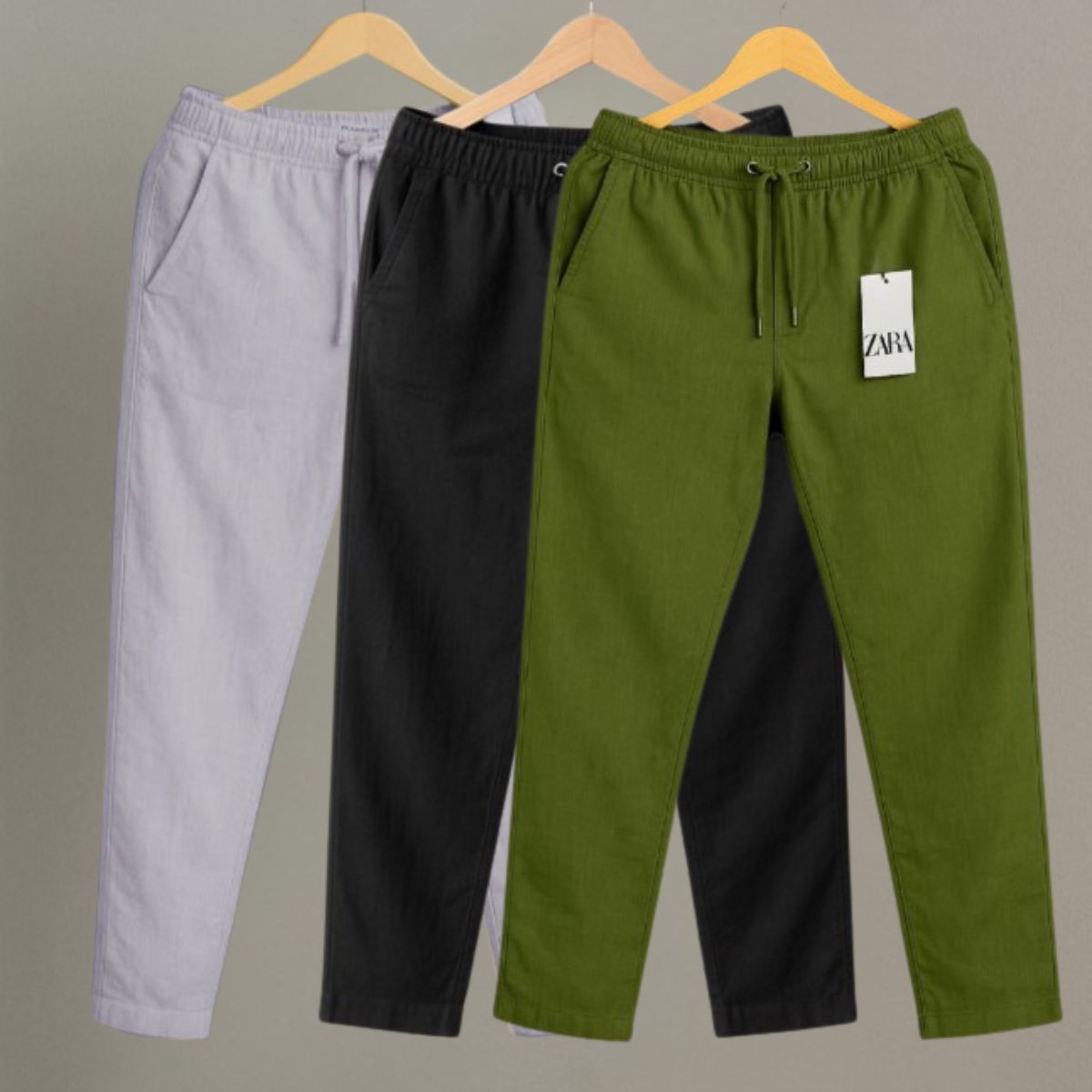 3 Pcs Combo Premium cotton trouser for Men (Ash, Black & Olive)